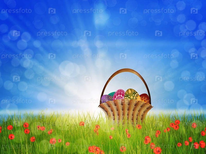 Корзина яиц на маковом поле