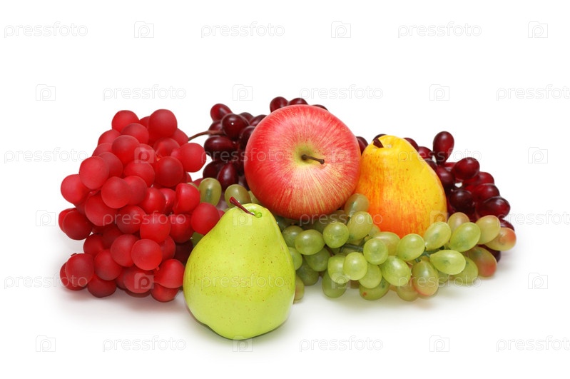 Спелые фрукты на белом фоне