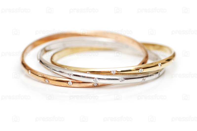Золотые браслеты на белом фоне