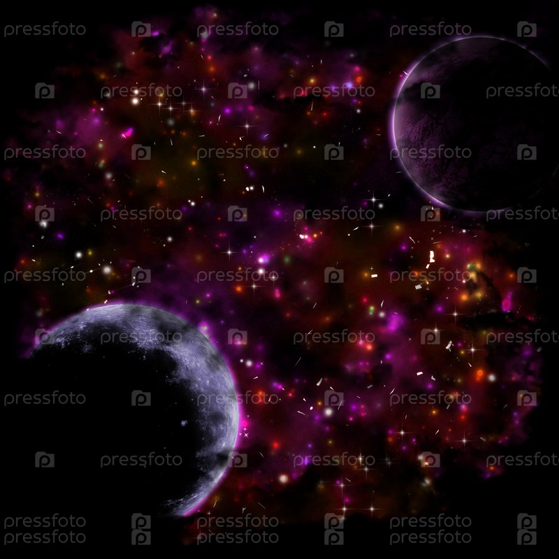 Темное пространство с планетами