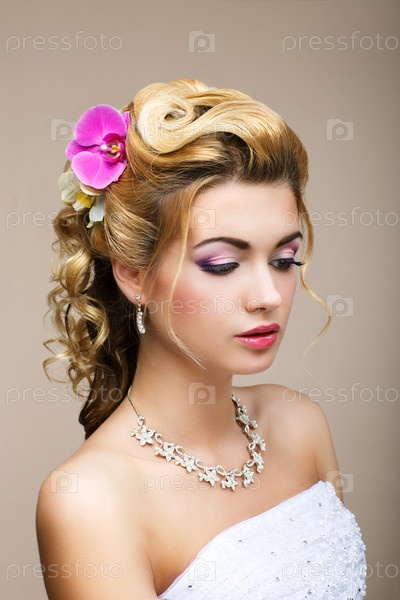 Мечты. Желание. Задумчивая роскошная невеста - великолепная прическа. Чистота