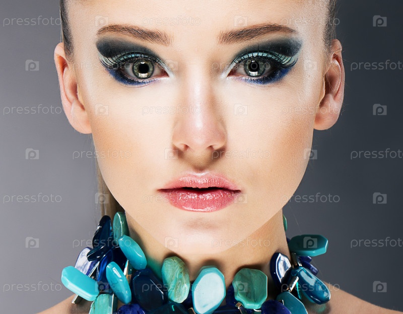 Гламурная уверенная женщина в драгоценном бирюзовом ожерелье крупным планом