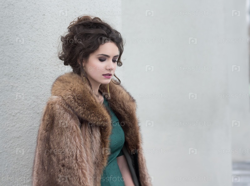 Элегантность. Очаровательная задумчивая брюнетка в шубе