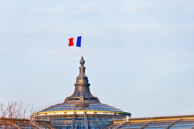 Французский флаг на большом дворце в Париже