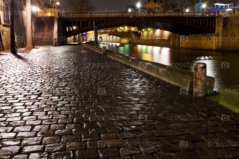 Набережная в Париже ночью