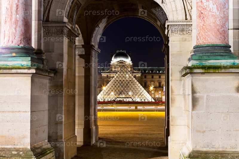 Пирамида Лувра сквозь Арку в Париже