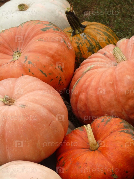 Крупные спелые тыквы на траве