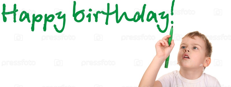 Ребенок пишет с днем рождения