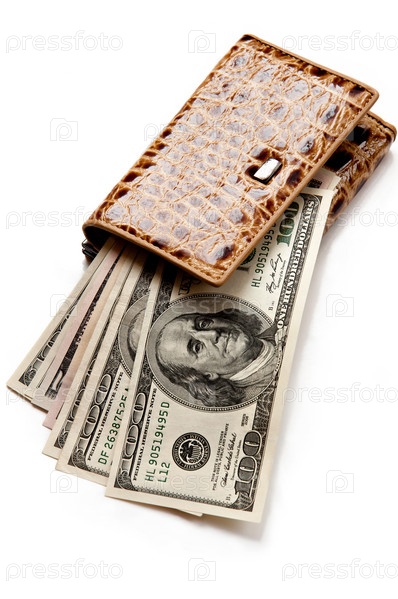 Доллары в бумажнике на светлом фоне