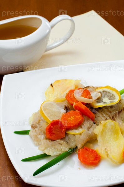 Треска, запеченная с овощами
