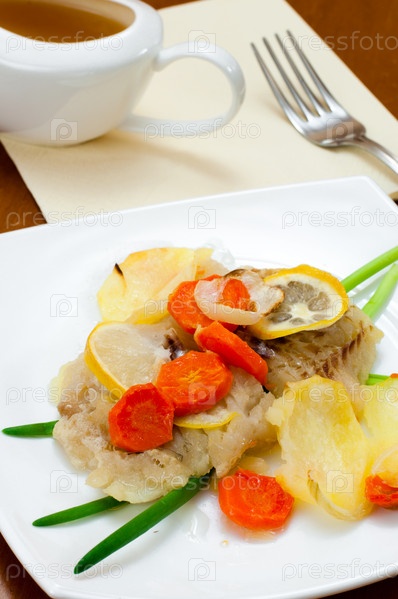 Треска, запеченная с овощами