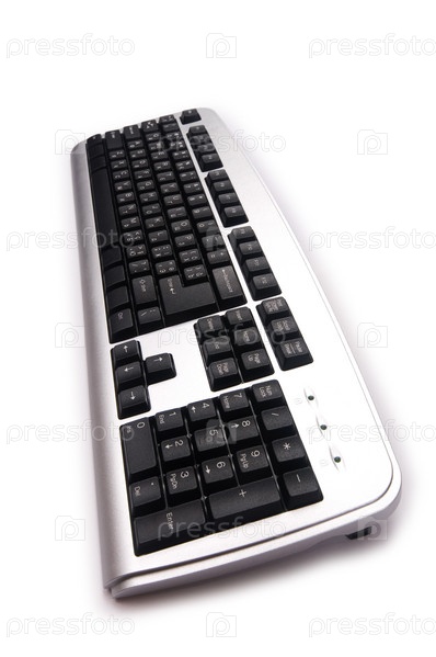 Серебристая клавиатура на белом фоне