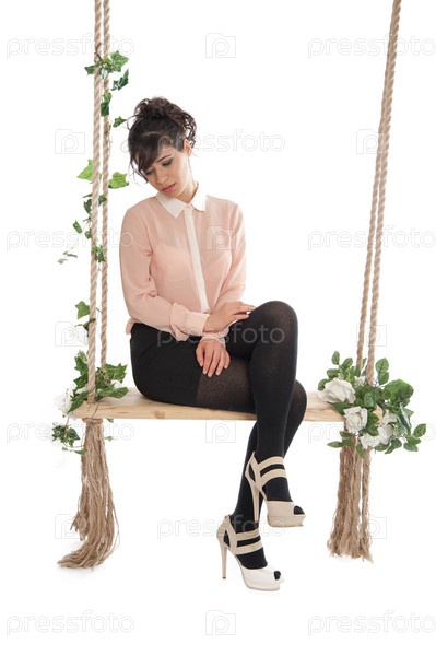 Женщина сидит на качели