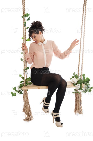 Женщина сидит на качелях