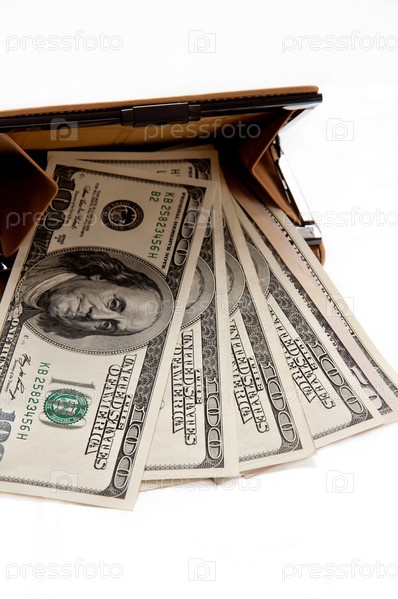 Доллары в бумажнике на светлом фоне