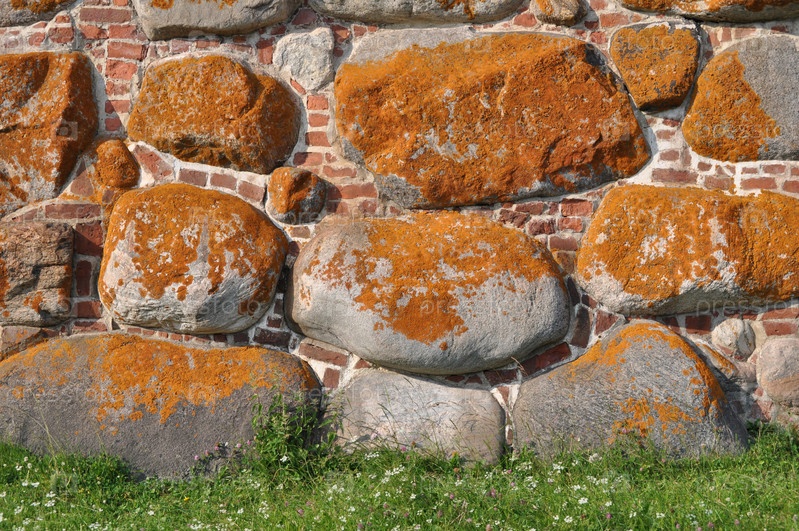 Валуны в основании стены Соловецкого монастыря, покрытые мхом