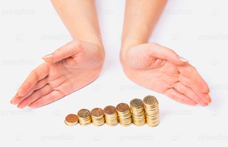 Женские руки вокруг столбиков из монет