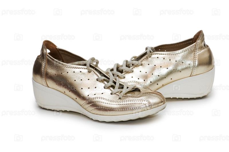 Женские кроссовки на каблуке на белом фоне
