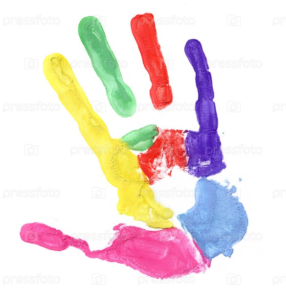 Цветной отпечаток руки на белом фоне