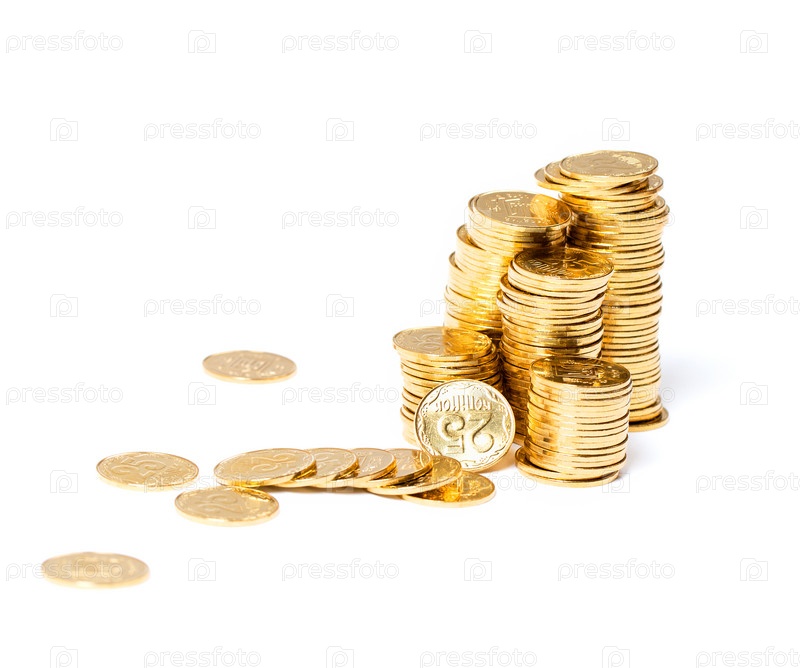Золотые монеты на белом фоне