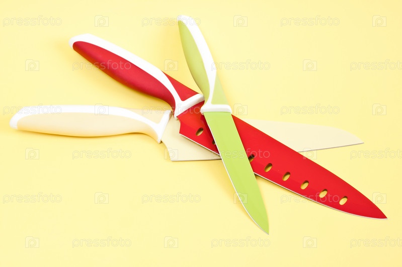 Кухонные ножи на желтом фоне