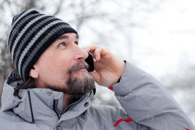 Мужчина разговаривает по телефону в парке