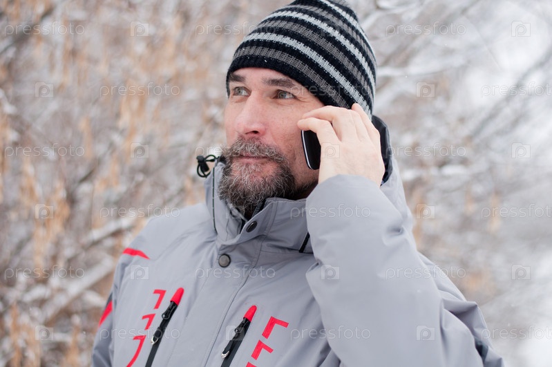 Мужчина разговаривает по телефону в парке