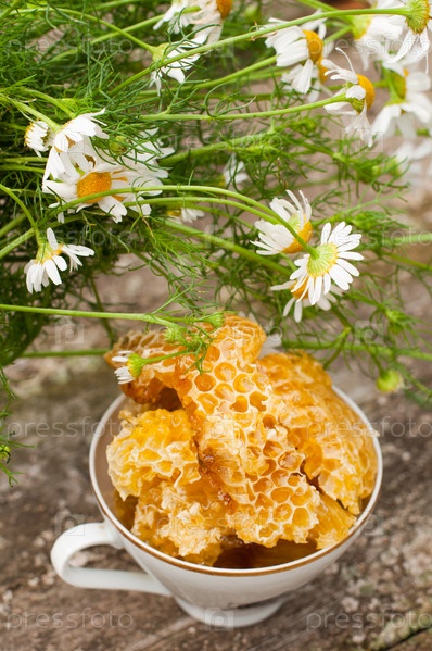 Вкусный мед в сотах и маргаритки