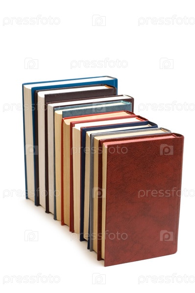 Книги, составленные в ряд на белом фоне