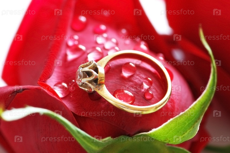 Обручальное кольцо с бриллиантом на красной розе