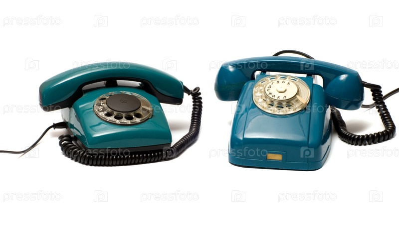Два старых дисковых телефона на белом фоне