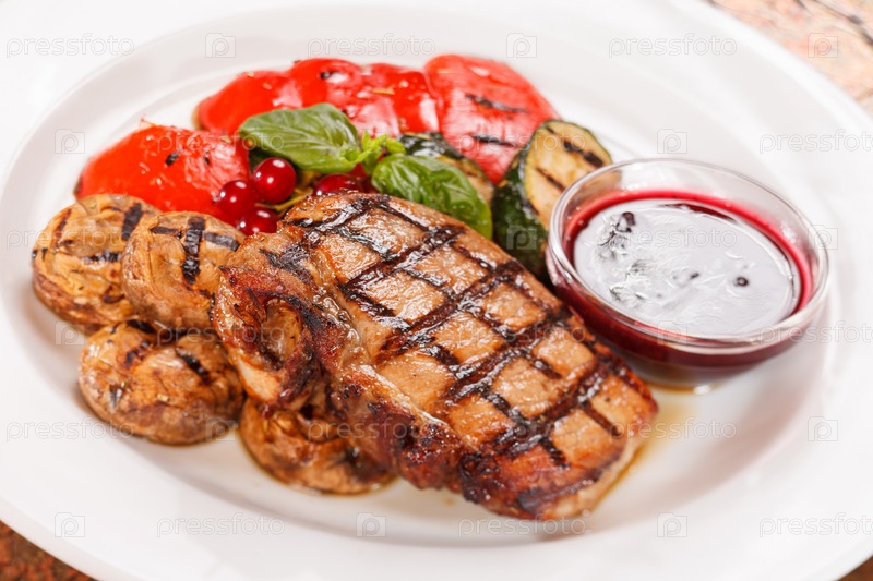 Стейк на гриле с овощами