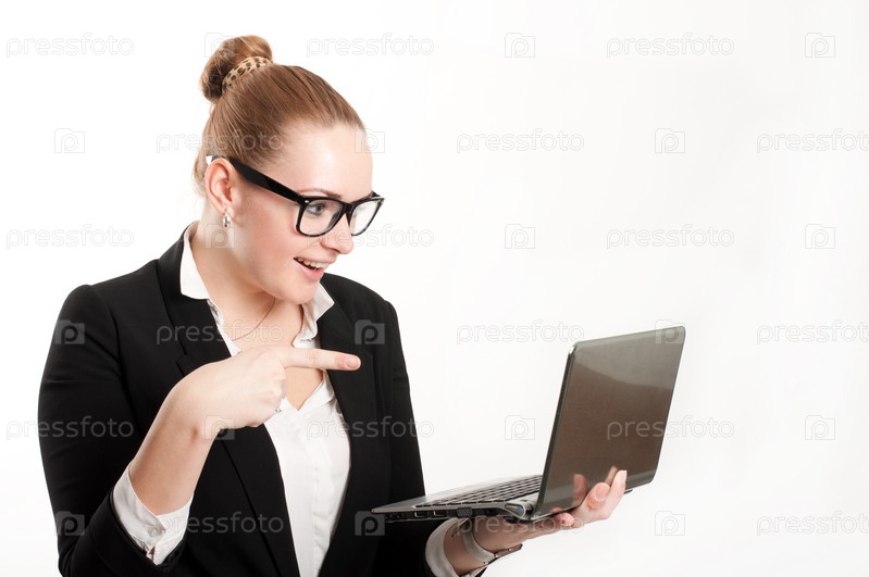Женщина с ноутбуком на светлом фоне