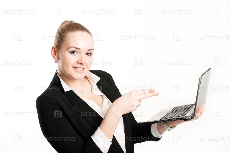 Женщина с ноутбуком на светлом фоне