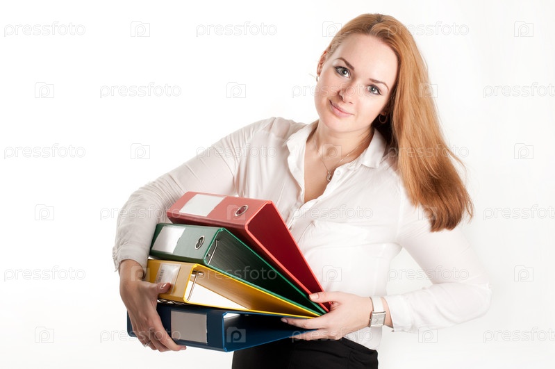 Деловая женщина с папками на светлом фоне