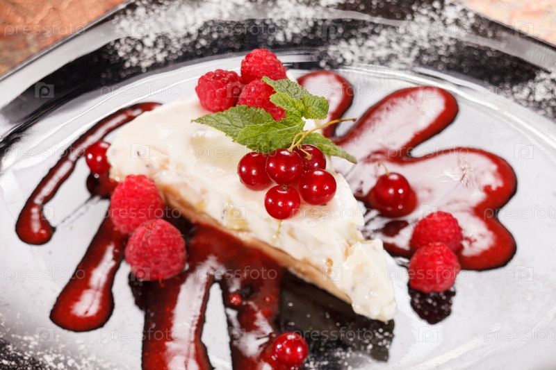 Чизкейк с красной смородиной и мятой