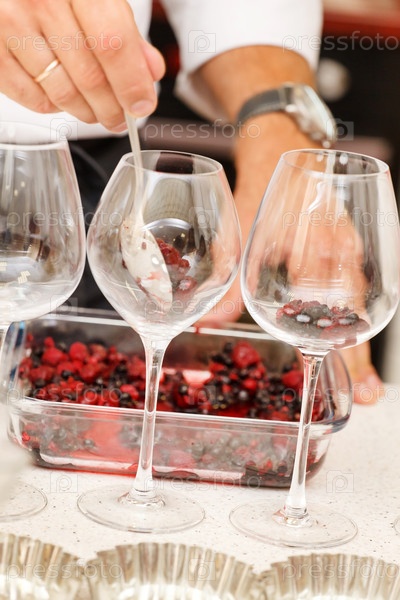 Шеф-повар готовит десерт