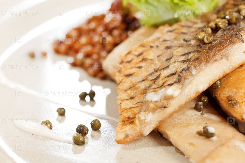 Карп с зеленой чечевицей