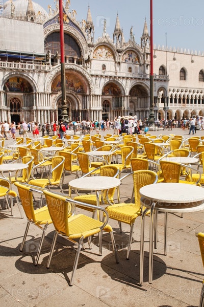Ряды стульев и столов в ресторане под открытым небом в Венеции