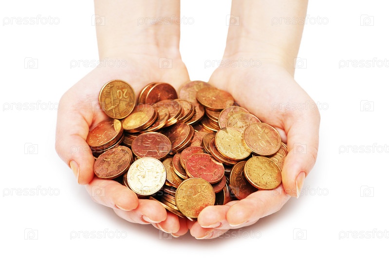 Горсть монет в руках