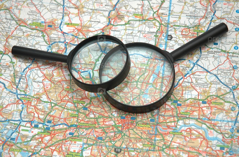 Две лупы на карте Лондона