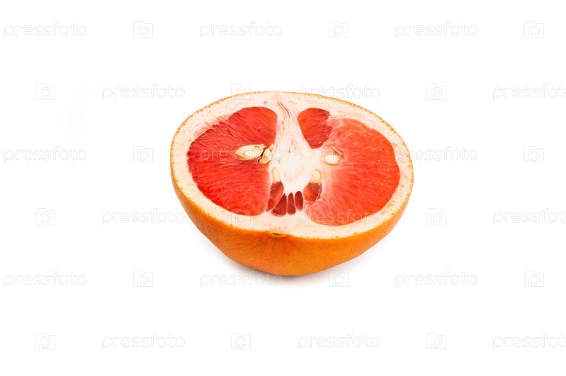 Половинка сочного грейпфрута на белом фоне