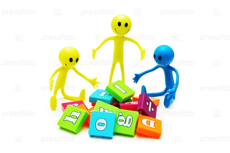 Три смайла играют с цветными буквами алфавита