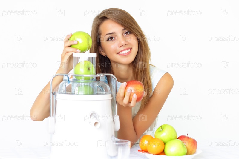 Счастливая девушка с соковыжималкой