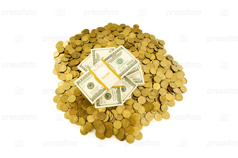 Пачки денег и монеты