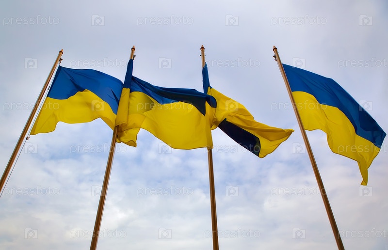 Украинские флаги на фоне неба