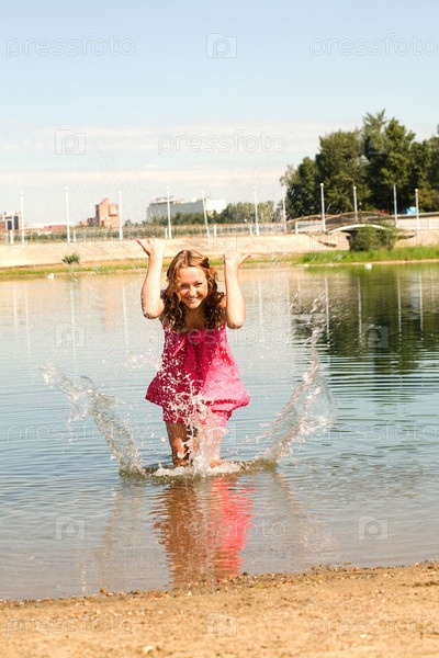 Девушка плещется в воде