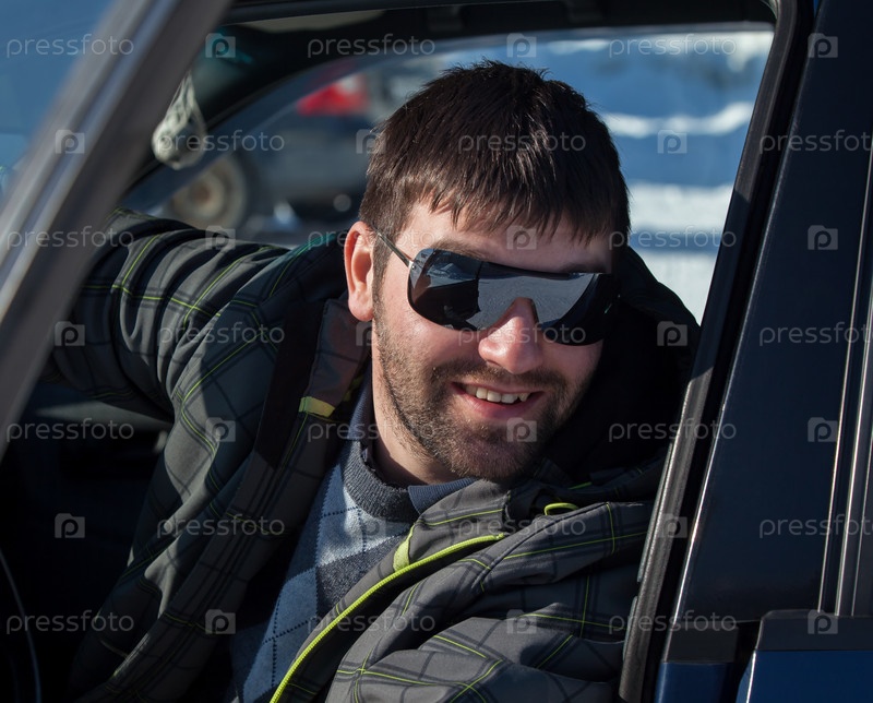 Молодой мужчина в солнцезащитных очках в автомобиле