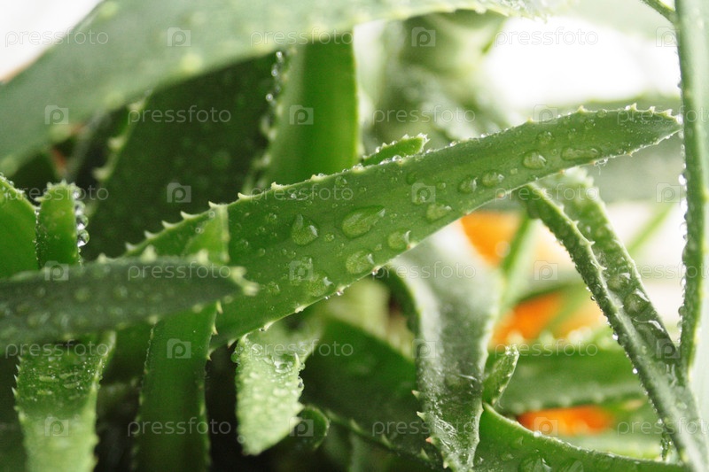Листок алое с каплями росы