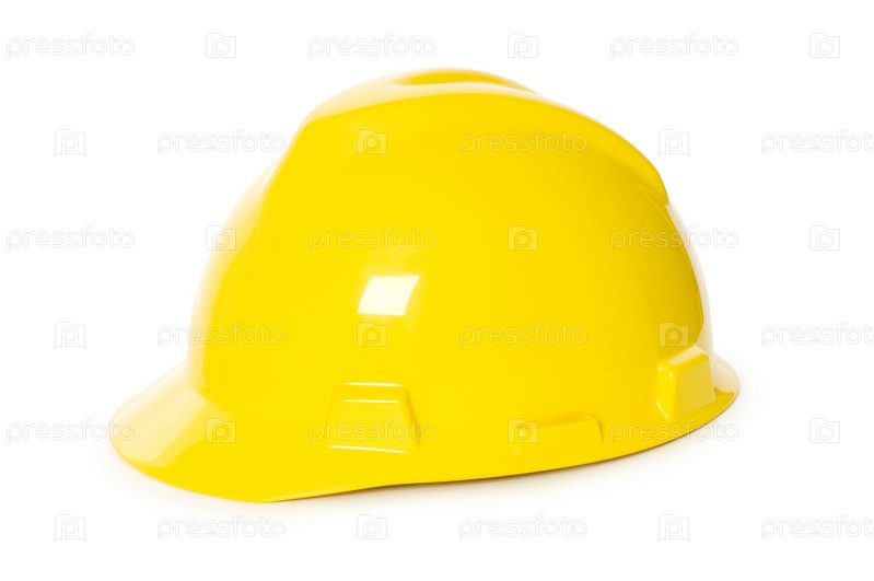 Желтая каска на белом фоне